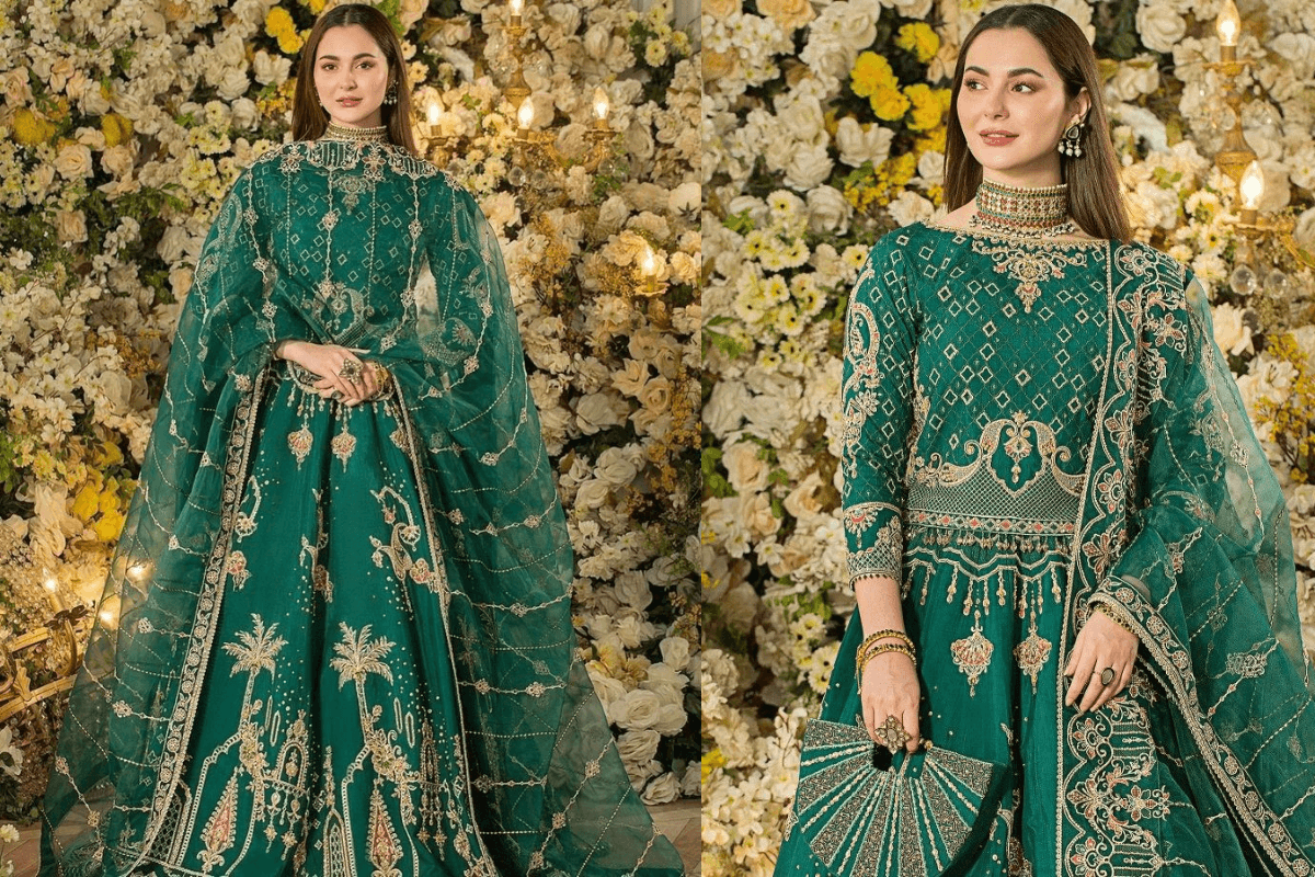 9. Hania Amir Green Lehenga Queen Vibes: ग्रीन लहंगा – क्वीन वाइब्स