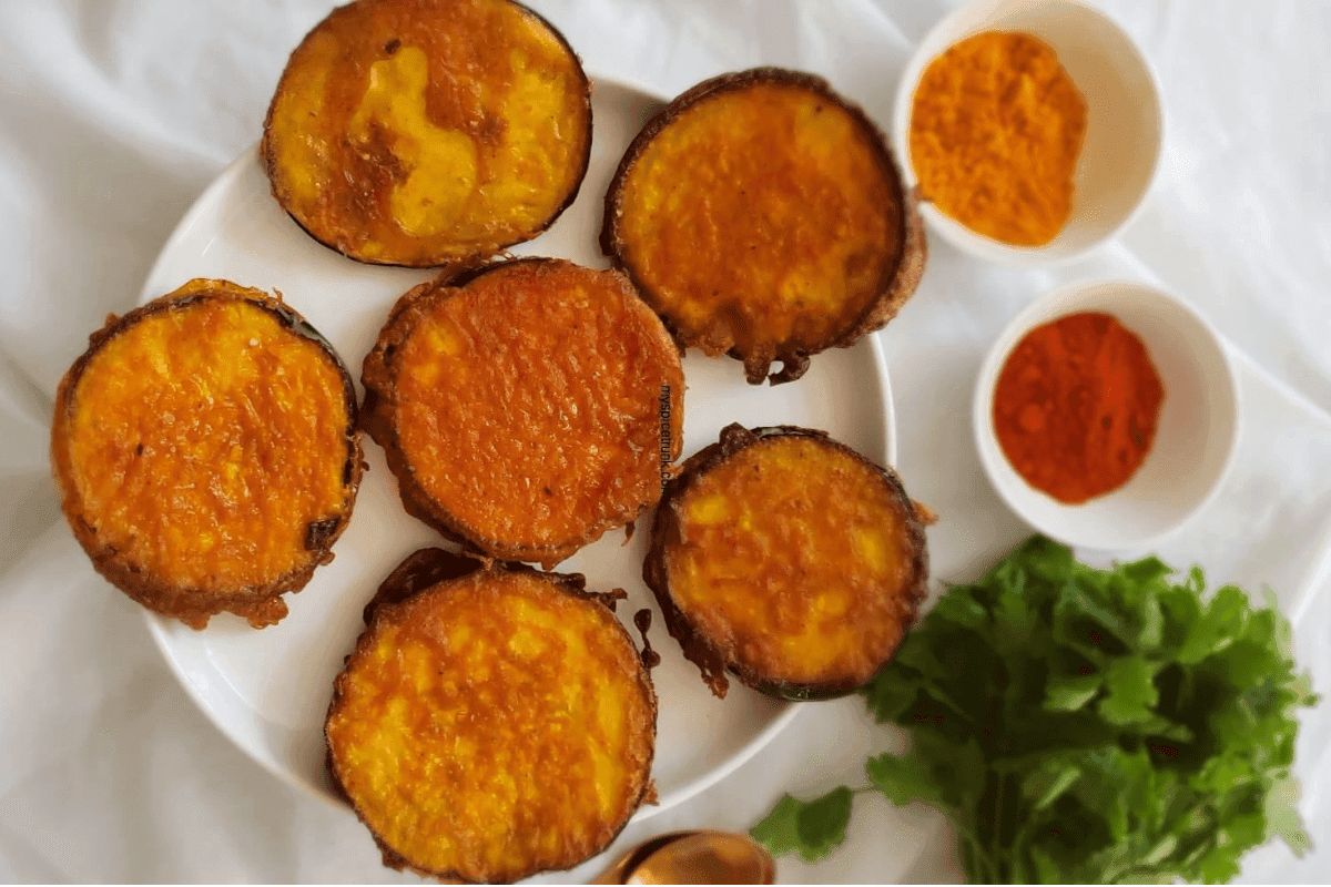 रेसिपी 4: बेगुनी (बैंगन के फ्रिटर्स)