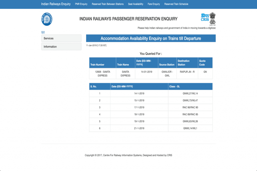 1. भारतीय रेल यात्री आरक्षण पूछताछ, वेबसाइट पर जाए, इस एप को ट्रेन सेवाओं के बारे में जानकारी देने के लिए डिज़ाइन किया गया है.