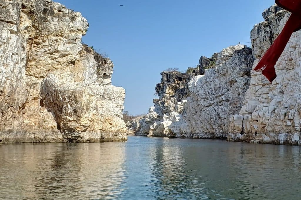 जबलपुर के भेड़ाघाट में नर्मदा नदी से सटी संगमरमर की चट्टानों को देखना एक मंत्रमुग्ध कर देने वाला अनुभव है. ये ऊंची सफेद चट्टानें, नदी के किनारे चलते समय जादुई तरीके से अपना आकार बदलती हैं. चांदनी रात में संगमरमर की चट्टानों के बीच बहती नदी में नाव की सवारी का मज़ा भी ले सकते हैं.
