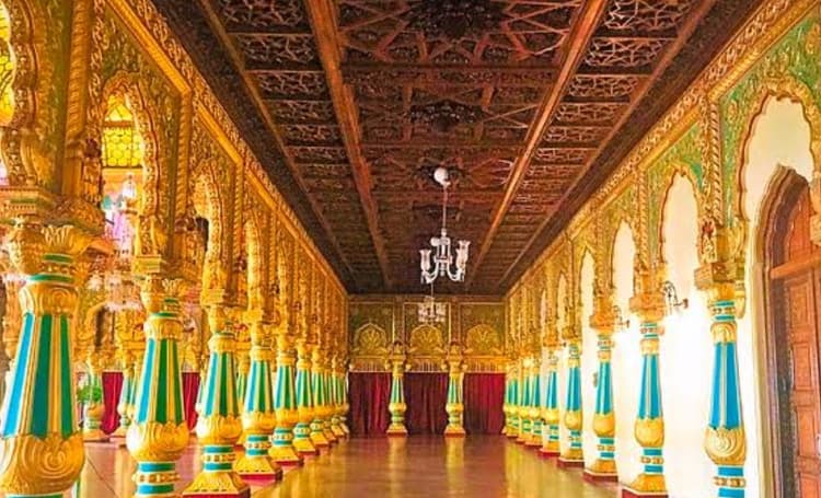 इंडो-सरसेनिक वास्तुकला में बने मैसूर पैलेस में मौजूद जटिल नक्काशीदार दरवाजे, रत्नजटित स्वर्ण सिंहासन, चित्रकारी और सुनहरा हौदा महल की भव्यता को दर्शाते हैं. यह प्राचीन महल अपनी भव्यता, सांस्कृतिक महत्व और वास्तुकला के लिए प्रसिद्ध दर्शनीय स्थल है.