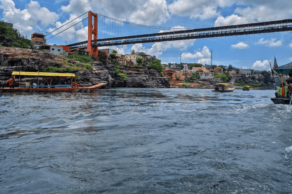 ओंकारेश्वर की प्राकृतिक सुंदरता को बढ़ाने वाला शांत नदी नर्मदा पर बना 270 फीट ऊंचा लटकता हुआ पुल है. यह कैंटिलीवर पुल न केवल मनोरम दृश्य प्रस्तुत करता है, बल्कि तीर्थयात्रियों को द्वीप पर विभिन्न आध्यात्मिक स्थलों से भी जोड़ता है. इस पुल पर से गुजरना जितना आध्यात्मिक है, उतना ही देखने में भी आनंददायक है.