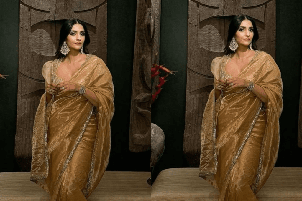 फैशन क्वीन सोनम कपूर हमेशा नए ट्रेंड्स को अपनाने में सबसे आगे रहती हैं. उन्होंने एक फोटोशूट में गोल्डन जरी ग्लास साड़ी को स्टाइल किया, जिसमें उनका एस्थेटिक लुक सोशल मीडिया पर वायरल हो गया.
