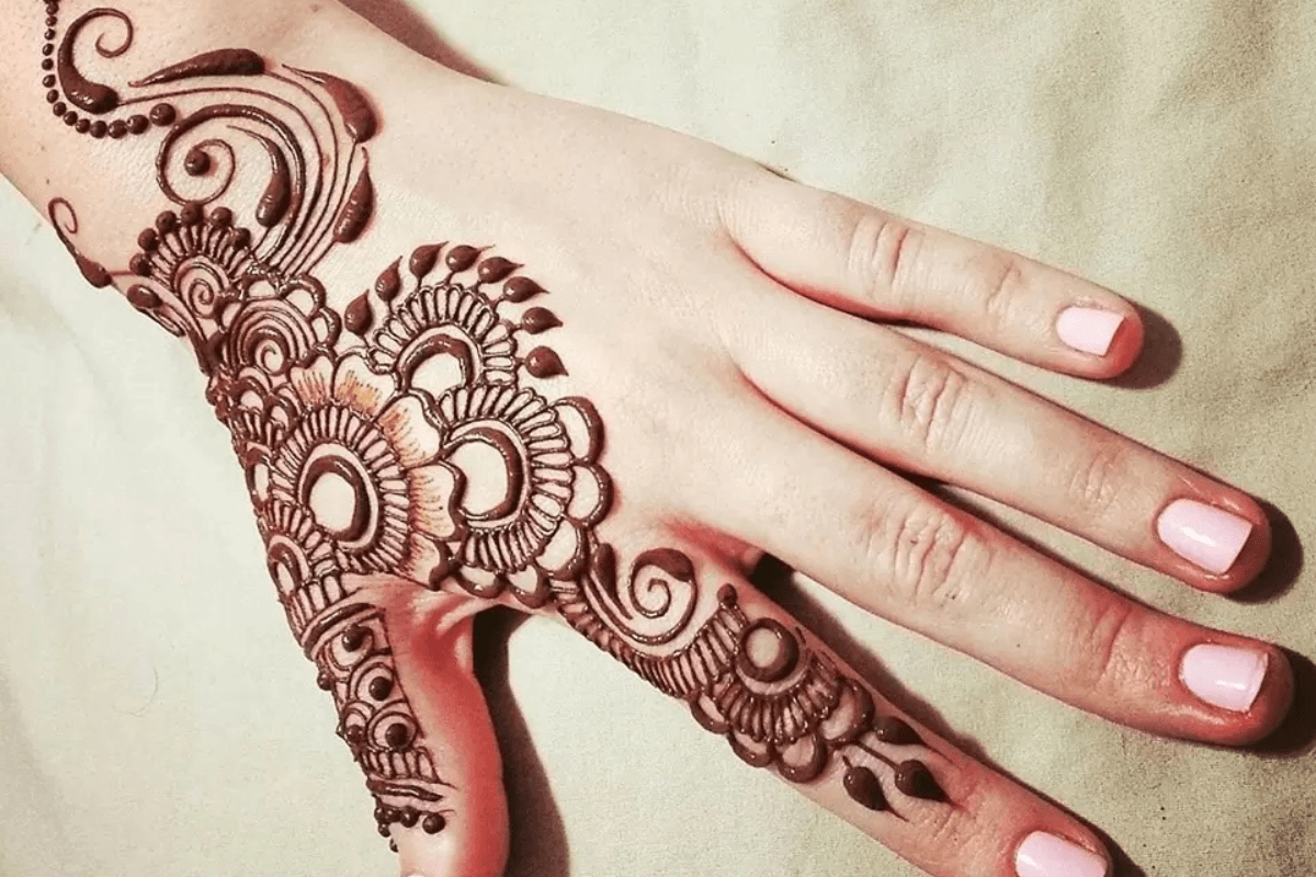 त्योहारों के समय जल्दी में भी अगर हाथों को खूबसूरत बनाना हो, तो यह डिजाईन बेस्ट ऑप्शन है. इसे लगाना आसान है और यह देखने में बहुत एलिगेंट लगता है. सिंपल मेहंदी डिजाइन्स में यह सबसे ज्यादा ट्रेंड में है.