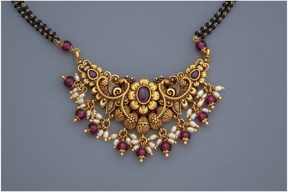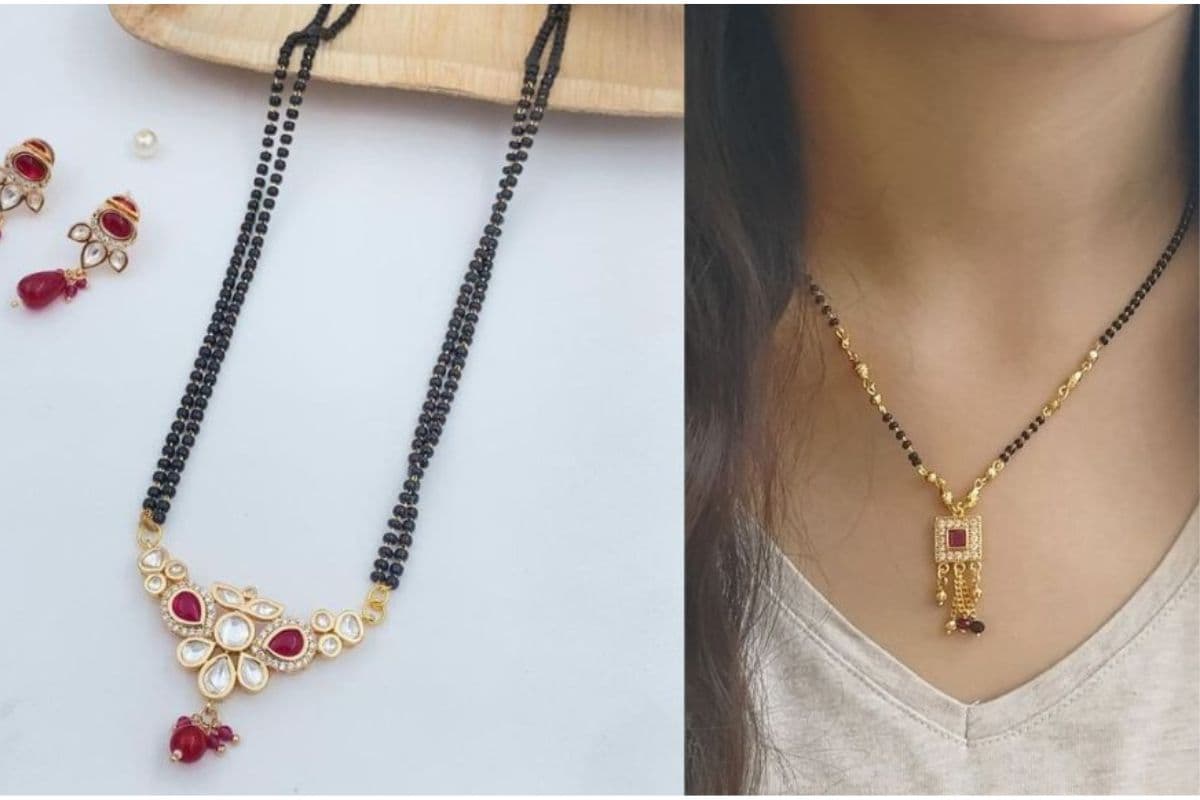 डबल पेंडेंट वाला मंगलसूत्र : इसमें दो छोटे-छोटे पेंडेंट होते हैं जिनमें रेड स्टोन लगे होते हैं. ये डिजाइन थोड़ा यूनिक लगता है और पार्टी में भी अच्छा दिखता है.