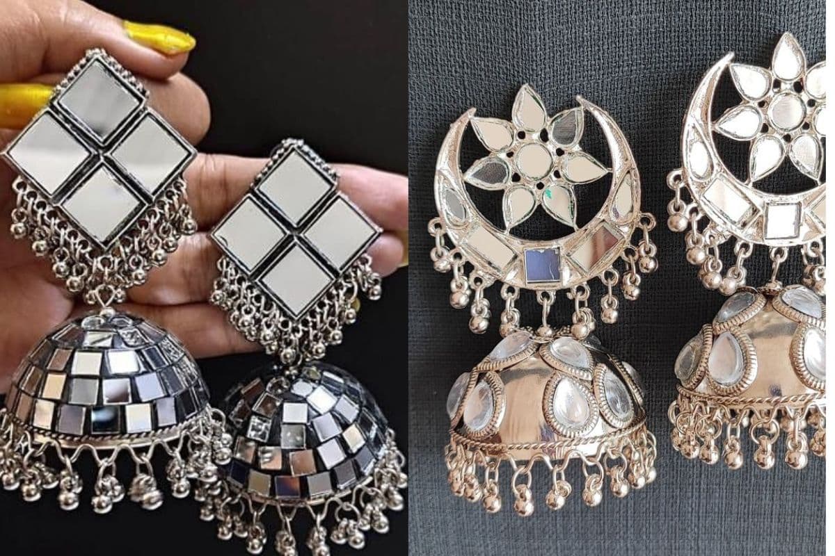 अफगानी स्टाइल मिरर-वर्क झुमके (Afghani Mirror-Work Jhumkas): इन दिनों अफगानी स्टाइल के बोहो झुमके सबसे ज्यादा डिमांड में हैं. इनकी खासियत इनमें लगे छोटे-छोटे शीशे होते हैं जो रोशनी में चमकते हैं और आपको एक रॉयल लुक देते हैं.