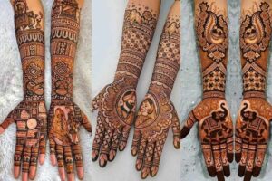 इस डिजाइन में मोर, दुल्हन-दूल्हा, हाथी, बाजूबंद, कंगन पैटर्न और जालियां शामिल होती हैं. यह बेहद बारीक और भारी मेहंदी होती है जो दुल्हन के हाथों को रॉयल और ग्रैंड लुक देती है.