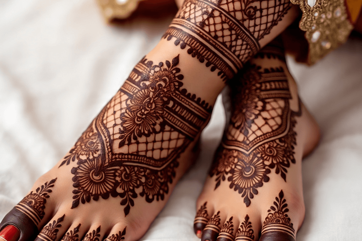अगर आप यूनिक और खूबूसरत मेहंदी डिजाइन चाहती हैं तो आप ऐसे पैटर्न बना सकती हैं. ये आपके पैरों को बहुत ही आकर्षक और खूबसूरत बनाएगा. इसके साथ ही आप इसे आसानी से लगा सकती हैं.