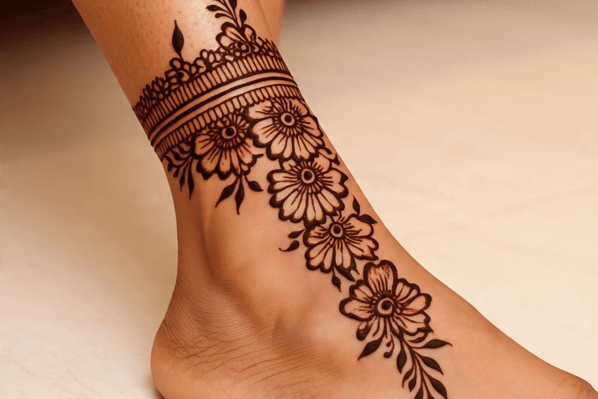 अगर आपको अपने पैरों को मिनिमल लुक देना है तो आप हल्के फूलों वाले मेहंदी पैटर्न लगा सकती हैं. ऐसे डिजाइन आजकल बहुत ट्रेंड में चल रहें हैं और इसके डिजाइन भी बहुत आसानी से लग जाते हैं.