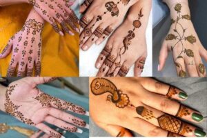 ब्रेसलेट की तरह दिखने वाला यह मिनिमल डिजाइन बहुत ही मॉडर्न लगता है. इसमें कलाई के पास पतली लाइनें, छोटे फूल या डॉट्स बना कर ब्रेसलेट जैसा पैटर्न तैयार होता है. यह देखने में बेहद फ्रेश और आकर्षक लगता है, और फोटो में भी बहुत सुंदर दिखता है.