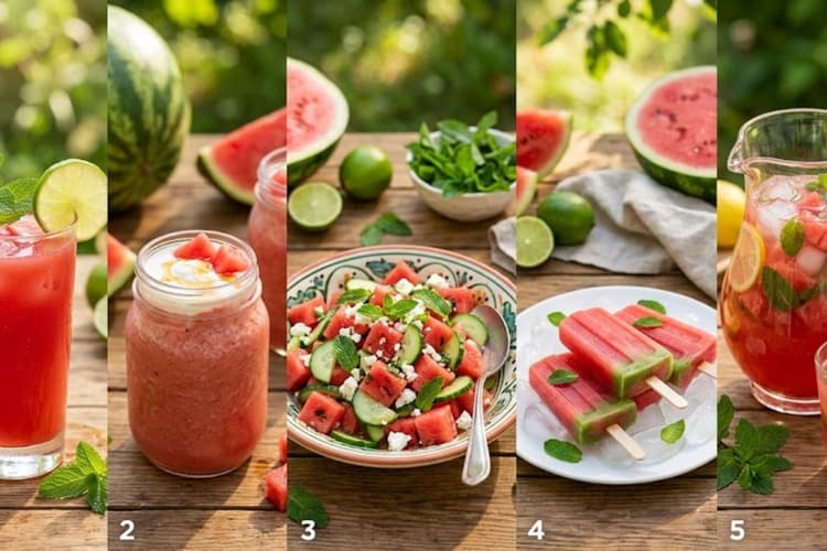 Watermelon Recipes: तरबूज गर्मियों का एक बेहद लोकप्रिय और ताजगी देने वाला फल है, जो शरीर को ठंडक पहुंचाने के साथ-साथ हाइड्रेटेड भी रखता है. इसमें पानी की मात्रा अधिक होती है, जिससे यह लू और डिहाइड्रेशन से बचाने में मदद करता है. तरबूज सिर्फ फल के रूप में ही नहीं, बल्कि इससे कई स्वादिष्ट और हेल्दी चीजें भी बनाई जा सकती हैं. जूस, स्मूदी, सलाद, शरबत और पॉप्सिकल जैसे विकल्प इसे और भी खास बनाते हैं. ये सभी रेसिपी न केवल स्वाद में लाजवाब होती हैं, बल्कि बनाने में भी बेहद आसान हैं, जो गर्मियों के लिए परफेक्ट मानी जाती हैं.