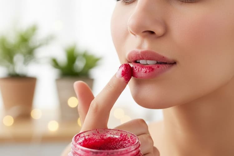 इस स्क्रब को हल्के हाथों से होंठों पर 2–3 मिनट तक गोल-गोल घुमाते हुए रगड़ें.
