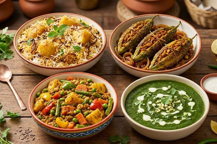 Easy Indian Veg Recipe: रोजाना का खाना अगर एक जैसा और साधारण लगे, तो उसमें थोड़ा सा नया तड़का डालना बहुत जरूरी हो जाता है. अगर आप भी अपने घर के खाने को मजेदार और स्वादिष्ट बनाना चाहते हैं, तो कुछ आसान और झटपट बनने वाली रेसिपी आपकी मदद कर सकती हैं. इस आर्टिकल में हम आपको आलू बिरयानी, भरवां करेला, चटपटा मिक्स वेज और क्रीमी पालक जैसी टेस्टी रेसिपी के बारे में बताएंगे, जिन्हें आप घर पर आसानी से बना सकते हैं. ये सभी डिश न सिर्फ स्वाद में लाजवाब हैं बल्कि रोज के खाने को खास भी बना देती हैं.