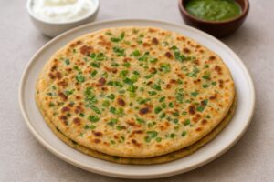 Hare Pyaz Ka Paratha: हरे प्याज का पराठा एक स्वादिष्ट, खुशबूदार और पौष्टिक देसी पराठा है, जो खासतौर पर नाश्ते या हल्के लंच के लिए बनाया जाता है. इसमें ताज़ा हरे प्याज़ को गेहूं के आटे और हल्के मसालों के साथ मिलाकर पराठा तैयार किया जाता है, जिससे इसका स्वाद बहुत ही लाजवाब हो जाता है. बाहर से हल्का कुरकुरा और अंदर से नरम रहने वाला यह पराठा बच्चों से लेकर बड़ों तक सभी को पसंद आता है. हरे प्याज में मौजूद फाइबर, विटामिन और मिनरल्स इसे सेहत के लिए भी फायदेमंद बनाते हैं. यह पराठा झटपट तैयार हो जाता है और इसके लिए किसी खास तैयारी की जरूरत नहीं होती. दही, मक्खन या अचार के साथ परोसा गया हरे प्याज का पराठा एक संपूर्ण और संतुलित भोजन माना जाता है, जो स्वाद और पोषण दोनों का बेहतरीन मेल है.