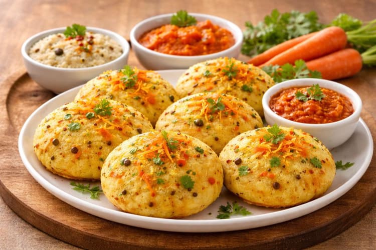 Carrot Idli Recipe: गाजर से बनी हुई इडली एक हल्की, पौष्टिक और स्वादिष्ट साउथ इंडियन खाना है, जिसे नाश्ते या शाम की चाय के साथ भी आसानी से खाया जा सकता है. इसमें मुख्य रूप से चावल, उड़द दाल और ताजगी भरी कद्दूकस की हुई गाजर का इस्तेमाल होता है. गाजर की मिठास और इडली की मुलायम बनावट इसे बच्चों और बड़ों दोनों के लिए आकर्षक बनाती है. यह इडली रेगुलर इडली से थोड़ा हेल्दी ऑप्शन है क्योंकि इसमें गाजर की वजह से विटामिन और फाइबर भी मिलता है. इसे नारियल की चटनी या सांभर के साथ परोसना इसे और भी स्वादिष्ट बना देता है.