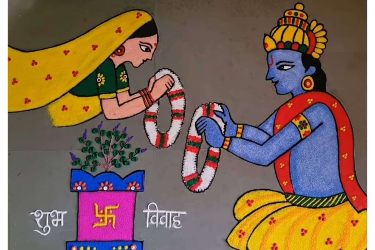 2. Tulsi Vivah Theme Rangoli Design: तुलसी विवाह थीम रंगोली डिजाइन