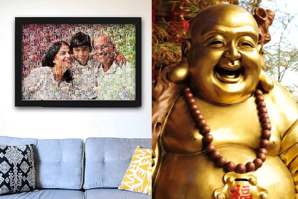 वास्तु शास्त्र के अनुसार आप को अपने लिविंग रूम में अपने परिवार की एक बड़ी सी तस्वीर लगानी चाहिए जिसमें सारे लोग खुशी से हंस रहे हो, इसके अलावा आप अपने लिविंग रूम में दरवाजे के पास एक लाफिंग बुद्धा जरूर की मूर्ति जरुर रखें.