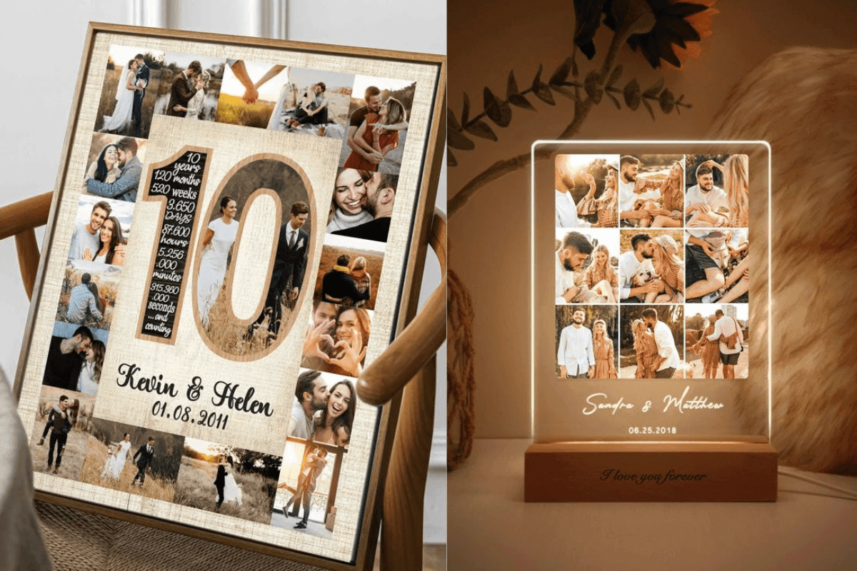 पर्सनलाइज्ड फोटो फ्रेम आपके रिश्ते की खूबसूरत यादों को बचाने का एक शानदार तरीका है. इसमें आपकी और आपकी पत्नी की खास तस्वीरों को सजाया जा सकता है. यह सिर्फ एक गिफ्ट नहीं, बल्कि आपके प्यार की यादों का असली सबूत बन जाता है. फ्रेम में आप कोई खास संदेश या तारीख भी जोड़ सकते हैं, जो इसे और भी खास बना देता है.