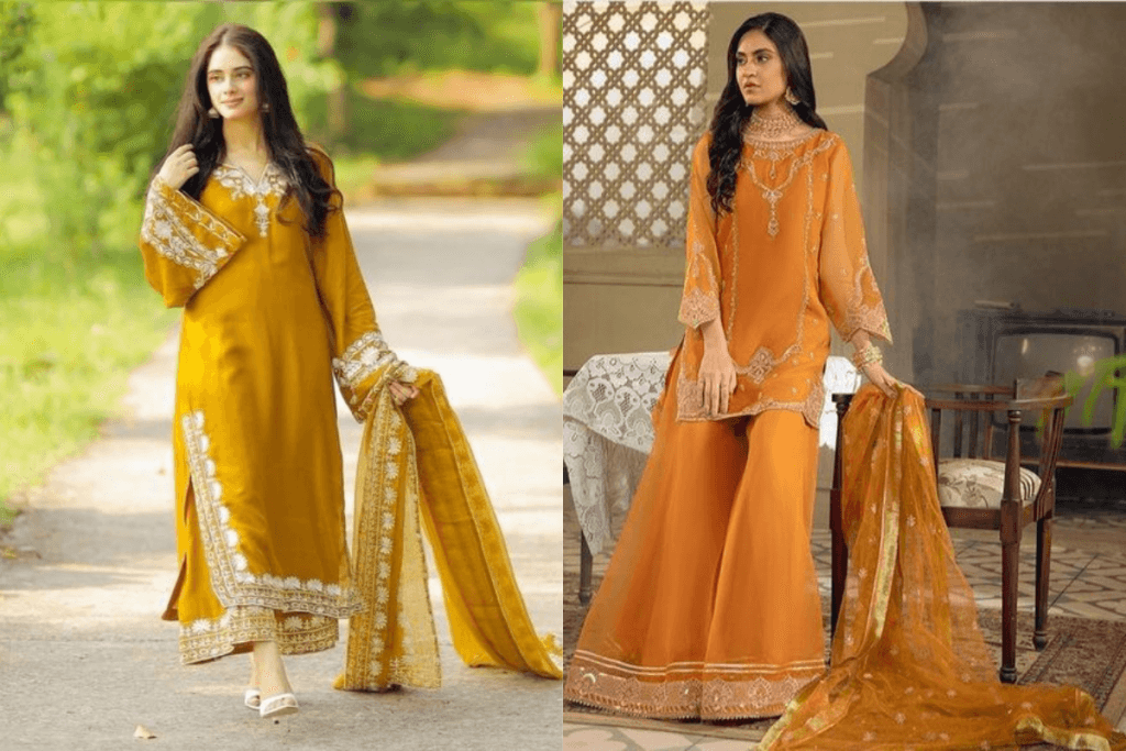 मिरर वर्क की चमक और पाकिस्तानी डिजाइन की बारीकी मिलकर इस सूट को खास बनाते हैं. मिरर वर्क सूट हल्दी, मेहंदी और संगीत जैसे फंक्शंस के लिए एकदम सही विकल्प है. इसके साथ सटल मेकअप और हल्के जूलरी पहनने से आपका लुक और भी निखर जाएगा.