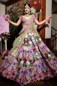 फ्लॉवर वर्क लहंगा को साड़ी की तरह ही ड्रेस किया जाता है, लेकिन इसमें फ्लेयर और लुक बहुत ज्यादा डिफरेंट होता है, इसमें छोटी-छोटी डिटेल्स जैसे बीड्स, मिरर, रिबन वर्क, या फ्लॉवर पैटर्न्स होते हैं, इस लहंगे का ट्रेंड काफी बढ़ चुका है और शादी के मौकों के लिए यह एक शानदार विकल्प बन सकता है.