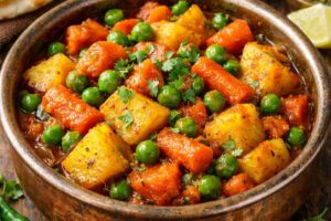 आलू गाजर मटर की सब्जी बनाने के लिए क्या सामग्री चाहिए?