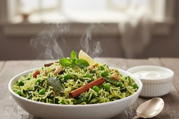 Palak Matar Pulao: अगर आप डिनर में झटपट से कुछ टेस्टी डिश बनाने का सोच रहे हैं तो पालक मटर पुलाव एक अच्छा ऑप्शन है. पालक मटर पुलाव एक स्वादिष्ट वन-पॉट रेसिपी (one pot recipe) है और इसे तैयार करने में ज्यादा मेहनत भी नहीं लगती है. सर्दियों के मौसम में आप इस रेसिपी को जरूर ट्राई करें. आइए जानते हैं इस आर्टिकल से पालक मटर पुलाव को बनाने का तरीका.