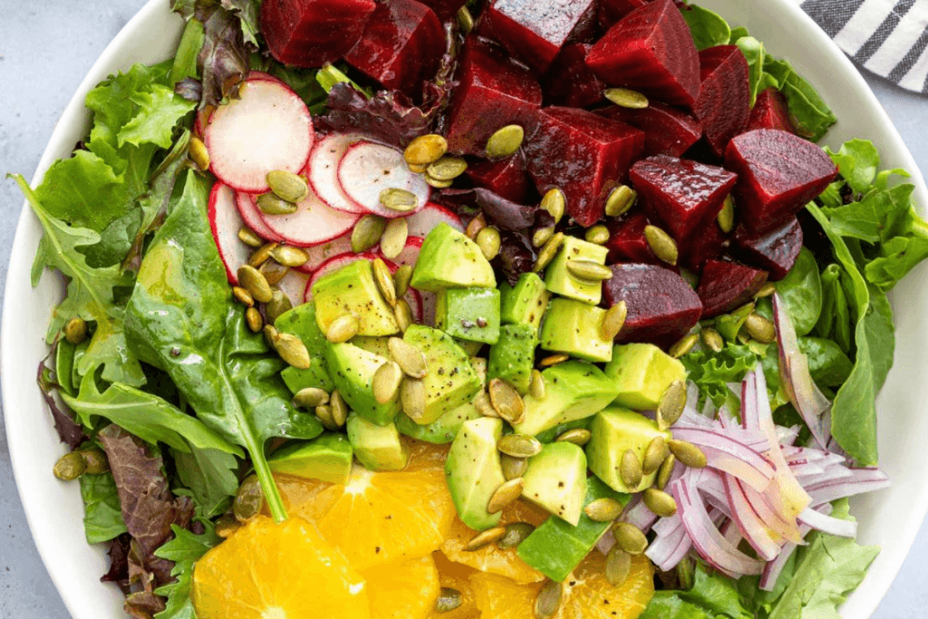 - फाइबर से भरपूर: सलाद में मौजूद पालक, गाजर और चुकंदर फाइबर से भरपूर हैं, जो पाचन तंत्र को स्वस्थ रखते हैं.