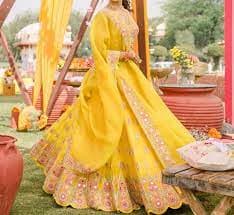 हल्दी सेरेमनी में पीले रंग का लहंगा एक बेहतरीन विकल्प है. यह न सिर्फ रंगीन और हल्का लगता है, बल्कि आपके उत्सव के मूड को भी और खुशहाल बना देता है.