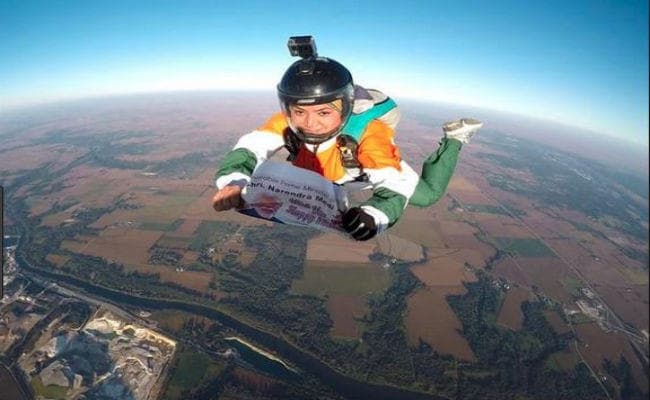 यह गिफ्ट था भारतीय पैराजम्पर शीतल महाजन का, जिन्होंने शिकागो में 13,000 फीट की ऊंचाई से विमान से छलांग लगाकर पीएम मोदी को जन्मदिन का शानदार तोहफा दिया. महाजन ने अपने इस साहसिक और सफल प्रदर्शन के बाद इस अनोखे जन्मदिन संदेश का वीडियो फेसबुक पर अपलोड किया.
