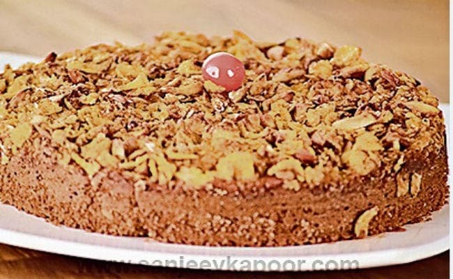 ओवन को 170° सेल्सियस तक गर्म करें. मकई के दानों को धो कर पीस लें. एक गहरे बर्तन में मैदा, कॉर्नफ्लावर, बेकिंग सोडा और बेकिंग पाउडर छान कर मिक्स करें. एक कटोरे में मक्खन और कन्डेनस्ड मिल्क को डाल कर मिक्स करें. अब दोनों की मिश्रणों एक मिलाएं और फिर उसमें छाछ डाल कर अच्छी तरह फेंटे. केक का बैटर तैयार है. बेकिंग पैन में अंदर की ओर मक्खन लगा कर बैटर को उसमें डालें. एक अन्य कटोरे में कॉर्नफ्लेक्स, बादाम, चीनी और एक टी-स्पून मक्खन डाल कर मिलाएं. इस मिश्रण को बेकिंग पैन में रखे बैटर के ऊपर समान रूप से फैलाएं. अब पहले से गर्म ओवन में बेकिंग पैन को रख दें और 35-40 मिनट तक बेक करें. उसके बार केक को बाहर निकाल कर बादाम कतरन और चेरी से सजाएं. फिर मनचाहे पीस में काट कर सर्व करें.