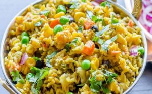 सामग्री : चावल- डेढ़ कप, मूंग दाल- डेढ़ कप, मटर 3 चम्मच, 1 बारीक कटा गाजर, 1 बारीक कटी टमाटर, 1 बारीक कटी शिमला मिर्च, हल्दी पाउडर 1/4 चम्मच, लाल मिर्च पाउडर 1/2 चम्मच, 2 बारीक कटी हरी मिर्च, बारीक कटा प्याज, बारीक कटी धनिया पत्ती- 2 चम्मच, 1 चम्मच घी, 2 इलायची, 1 चम्मच जीरा, गरम मसाला पाउडर, चुटकी भर हींग…