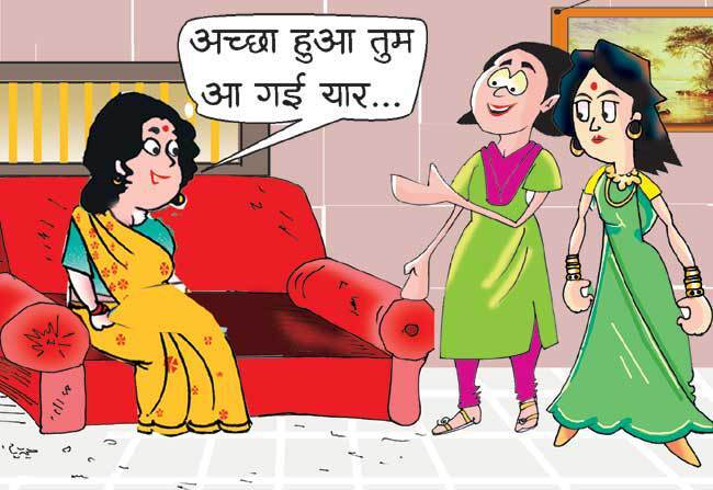 शुभांगी ने कहा-अच्छा हुआ तुम आ गयीं माधुरी. मुङो कितना टेंशन था, लेकिन तुमसे और भाभी जी से बातें करके मन हल्का हुआ और टेंशन भी खत्म हो गया. माधुरी हंसते हुए बोली- इसीलिए कहती हूं डियर कि दोस्तों से मिलते-जुलते रहना चाहिए. दोस्त तो एंजिल होते हैं. कोई भी मुसीबत, कैसा भी टेंशन और कैसी भी समस्या हो, दोस्त से बात करो और वह सॉल्व्ड. नीला ने कह- इसलिए हमें अपनी सारी प्रॉब्लम अपने दोस्तों से शेयर करनी चाहिए.