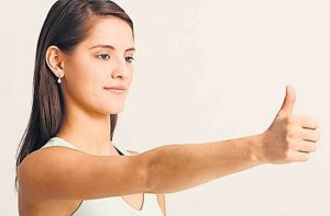 अभ्यास की विधि : अभ्यास के लिए जमीन पर पैरों को सामने करते हुए बैठ जाएं. दोनों हाथों की मुट्ठियों को इस प्रकार घुटनों पर रखें कि अंगूठे ऊपर की ओर रहें. अपनी दोनों भुजाओं को सीधा रखते हुए और अंगूठे की गति पर दृष्टि केंद्रित करते हुए धीरे-धीरे दाहिने अंगूठे के ऊपर उठाएं.