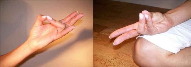 विधि:- कनिष्ठा तथा अनामिका अँगुलियों के अग्रभाग को अँगूठे के अग्रभाग से मिलायें.