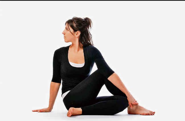 विधि : जमीन पर कंबल बिछा कर पैरों को सामने फैला कर बैठ जाएं. दाहिने पैर को मोड़ लें तथा दाहिने पैर को बायें घुटने के बगल में बाहर की ओर रखें. ध्यान रहे कि दाहिना तलवा जमीन पर पूर्णत: चिपका रहे. दाहिने पैर की उंगलियां सामने की ओर होंगी. बायें हाथ को शरीर के बायीं ओर रख लें तथा इसके सहारे बायें पैर को पीछे दाहिने मोड़ते हुए दाहिने नितंब के निकट रखें. इसके बाद धड़ को थोड़ा दाहिनी तरफ घुमाएं. दोनों हाथों को शरीर के दाहिनी ओर जमीन पर रखें तथा भुजाओं को सीधा रखें. अब बायें हाथ से दाहिने टखने को पकड़ने का प्रयास करें, परंतु जोर न लगाएं. बायां हाथ सीधा रहे. दाहिना घुटना बायीं कांख से निकले. अब क्षमतानुसार सीधे बैठें. अब दाहिनी भुजा को शरीर के सामने ऊपर उठाएं और उंगलियों के पोरों पर दृष्टि केंद्रित करें. धीरे से दाहिनी ओर मुड़ें तथा साथ ही अपनी भुजाओं, धड़ एवं सिर को भी घुमाएं.