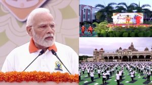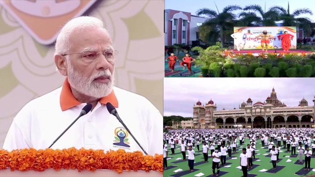 कर्नाटक के मैसूर पैलेस में सामूहिक योग प्रदर्शन में शामिल हुए पीएम मोदी