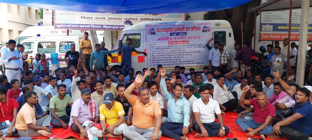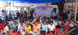 102 एंबुलेंस चालकों का अनिश्चितकालीन हड़ताल शुरू, प्रदर्शन