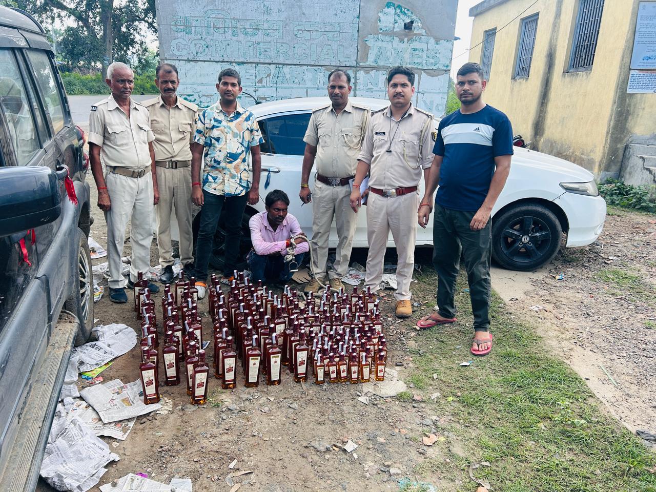 चितरकोली जांच चौकी पर शराब के साथ तस्कर गिरफ्तार प्रतिनिधि, रजौली. थाना क्षेत्र के चितरकोली स्थित जांच चौकी से शुक्रवार को उत्पाद बलों ने जांच के क्रम में एक लग्जरी कार को जब्त किया है. लग्जरी कार में बने गुप्त तहखानों से 153 बोतलों में बंद 74 लीटर विदेशी शराब को बरामद किया है. गिरफ्तार शराब तस्कर की पहचान नालंदा जिले के रहुई थाना क्षेत्र के नंदन पासवान के पुत्र सुग्रीव पासवान के रूप में हुई है. गिरफ्तार युवक ने पूछताछ के क्रम में बताया कि वह दो-तीन बार पूर्व में भी शराब की खेप ले जा चुका था. इस बार दुर्गा पूजा में शराब बेचकर अधिक पैसा कमाने के चक्कर में उत्पाद बलों के हत्थे चढ़ गया. उत्पाद अधीक्षक अरुण कुमार मिश्र ने बताया कि बिहार मधनिषेध एवं दशहरा को लेकर जांच चौकी पर उत्पाद बलों की ओर से सघन वाहन जांच की जा रही है, जिसका नेतृत्व उत्पाद इंस्पेक्टर अमृत कुमार गुप्ता कर रहे हैं. शुक्रवार की सुबह झारखंड से बिहारशरीफ जा रही होंडा सिटी नामक लग्जरी कार संख्या डब्लूबी06जे9057 के चालक को जांच के लिए रोका गया. जांच के क्रम में कार की सीट एवं डैशबोर्ड में बने गुप्त तहखानों से रॉयल स्टेज के 750 एमएल वाली 65 बोतल, 375 एमएल वाली 48 बोतल एवं 180 एमएल वाली 40 बोतल शराब को बरामद किया है. दो बसों से दो लोग धराये वहीं, दूसरी ओर विभिन्न दो यात्री बसों में सवार रहे तीन लोगों के पास से विदेशी शराब, बियर एवं चुलाई शराब को बरामद किया गया हैै. गिरफ्तार लोगों में नालंदा जिले के नरेंद्र प्रसाद, शेखपुरा जिले के विपिन कुमार एवं रांची के रवि कुमार सोनी शामिल हैं. उत्पाद अधीक्षक ने कहा कि जब्त शराब व लग्जरी कार के अलावे गिरफ्तार लोगों के विरुद्ध बिहार उत्पाद अधिनियम की सुसंगत धाराओं के तहत प्राथमिकी दर्ज कर ली गयी हैै. गिरफ्तार लोगों को शुक्रवार को स्वास्थ्य जांच के बाद न्यायिक हिरासत में जेल भेज दिया गया है. मौके पर उत्पाद एसआइ प्रवीण कुमार, एएसआइ सुजीत कुमार, एएसआइ दीपक कुमार शर्मा एवं एएसआइ मो. साबिर के अलावे गृहरक्षक के जवान मौजूद रहे.