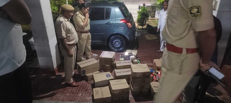 ठाकुरगंज. ठाकुरगंज पुलिस नेगश्ती के दौरान शुक्रवार को एक बंगाल नंबर की कार से 21 कार्टून विदेशी शराब जब्त की है. इस दौरान वाहन चालक फरार होने में कामयाब रहा. एसडीपीओ टू मंगलेश कुमार सिंह ने बताया कि बंगाल के विधाननगर से जोड़ने वाली प्रधानमंत्री सड़क ठाकुरगंज -मुरारीगच्छ पर ठाकुरगंज पुलिस वाहन जांच में संध्या में जुटी हुई थी. तभी अचानक एक बंगाल नंबर शिफ्ट वाहन पुलिस टीम को देखते हुए तेज रफ्तार से भागने लगा. जिसके बाद ठाकुरगंज पुलिस टीम द्वारा उक्त वाहन का पीछा किया गया. फुलवाशा के समीप वह वाहन दुर्घटनाग्रस्त अवस्था में मिला. लेकिन चालक फरार हो गया था. वाहन की तलाशी लेने पर उसमें भारी मात्रा में विदेशी शराब कार्टन मे रखे हुए थे. जिसके बाद वाहन जब्त करके पुलिस अग्रिम कार्रवाई में जुटी हुई है. कुल 21 कार्टून में दौ से अधिक विदेशी शराब होने की आशंका है. कार्टन के साथ बोरी में फ्रूटी टाइप के विदेशी शराब के 139 पाऊच मिले हैं.