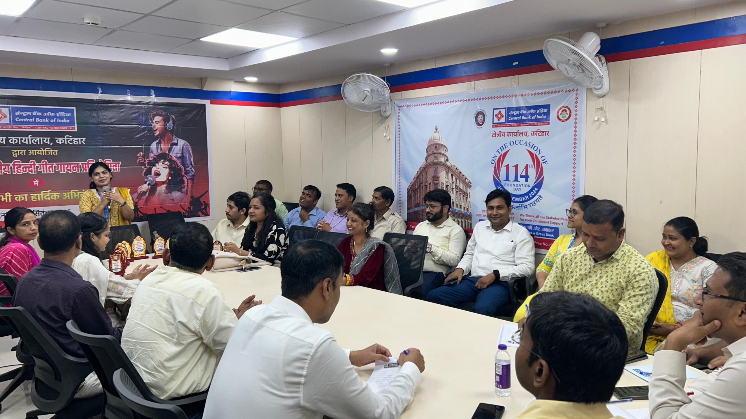 कटिहार सेन्ट्रल बैंक ऑफ इंडिया, क्षेत्रीय कार्यालय, कटिहार में हिंदी माह के अवसर पर अखिल भारतीय गीत गायन प्रतियोगिता का आयोजन किया गया. शुरुआत दीप प्रज्ज्वलन और राजभाषा प्रतिज्ञा के साथ हुई. अध्यक्षता बैंक के क्षेत्रीय प्रमुख अमृतेश परमार्थ ने की. कहा कि हिंदी हमारी संस्कृति की आत्मा है. अधिक प्रयोग से कार्यकुशलता के साथ-साथ भाषा का गौरव भी बढ़ता है. प्रतियोगिता में प्रतिभागियों ने एक से बढ़कर एक प्रस्तुति दी. निर्णायकों ने परिणाम की घोषणा करते हुए प्रबंधक अभिजीत कुमार को प्रथम, वरिष्ठ प्रबंधक पंकज कुमार को द्वितीय तथा मुख्य प्रबंधक गोपाल प्रसाद को तृतीय स्थान का विजेता घोषित किया. जबकि शिखा झा और निर्भय झा को प्रोत्साहन पुरस्कार से सम्मानित किया गया. कार्यक्रम में क्षेत्रीय कार्यालय परिवार के सभी अधिकारी-कर्मचारी उत्साहपूर्वक शामिल हुए.