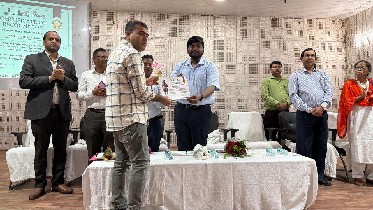 संवाददाता, जामताड़ा. समाहरणालय सभागार में शुक्रवार को आदि कर्मयोगी अभियान में उत्कृष्ट कार्य करने वाले अधिकारियों एवं कर्मियों को सम्मानित किया गया. इस अवसर पर डीसी रवि आनंद ने कहा कि आदि कर्मयोगी अभियान के तहत देश भर के जिलों में जामताड़ा जैसे छोटे जिले को राष्ट्रीय स्तर पर सम्मान मिलना गौरवान्वित करता है. यह किसी एक व्यक्ति के प्रयास नहीं, बल्कि पूरी टीम वर्क का परिणाम है. कहा, सभी ने बहुत ही कम समय में सभी 480 ग्रामों के लिए ग्राम एक्शन प्लान तैयार किया, 20-20 कर्मयोगी को चुना गया, पोर्टल से जुड़े कार्यों के अलावा सभी कार्यों को मिशन मोड में पूरा किया. पूरे टीम की मेहनत का परिणाम है कि केंद्र/राज्य सरकार के द्वारा जामताड़ा जिला को अवॉर्ड दिया गया. कहा कि आने वाले समय और भी कुछ कार्यों को मिशन मोड में टेकअप किया जाएगा. उन्होंने डिजिटल लाइब्रेरी, लर्निंग इंस्टीट्यूट के अधिष्ठापन की बात कही, जिसमें विभिन्न कंप्यूटर कोर्स के सर्टिफिकेट भी दिए जाएंगे. शैक्षणिक संस्थानों के मदद से एआई लैब की स्थापना की भी बात कही. डीसी ने आदि कर्मयोगी अभियान में उत्कृष्ट कार्य को लेकर सभी बीडीओ, बीडब्ल्यूओ व अन्य अधिकारियों को प्रशस्ति पत्र एवं बुके देकर सम्मानित किया. मौके पर डीडीसी निरंजन कुमार, निदेशक आइटीडीए जुगनू मिंज, उप निर्वाचन पदाधिकारी विजय कुमार, जिला पंचायत राज पदाधिकारी पंकज कुमार रवि आदि मौजूद थे.