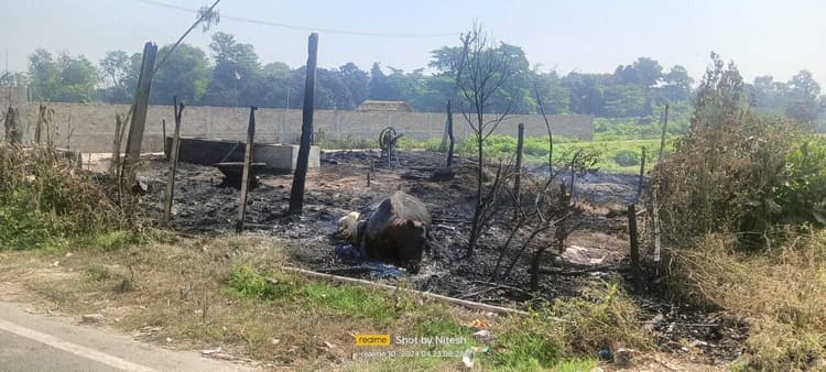 आग से गाय, बछड़ा सहित गौशाला जलकर हुआ खाक . बचाव करने गये गोपालक झुलस कर हुआ जख्मी