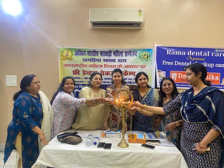 खगड़िया. शहर के दुलारी कथ भवन में महिलाओं के लिए नि:शुल्क डेंटल कैंप लगाया गया. रमा डेंटल केयर और अखिल भारतीय मारवाड़ी महिला सम्मेलन के संयुक्त प्रयास से दुलारी कथा भवन में आयोजित निःशुल्क दंत चिकित्सा शिविर में नौ दर्जन से अधिक मरीजों का इलाज किया गया. इस जागरूकता अभियान के तहत डॉ. कनिका द्वारा महिलाओं की मुफ्त दंत जांच, ओरल हेल्थ एजुकेशन व परामर्श दिया गया. डॉ. कनिका ने बताया कि महिलाओं को पुरुषों की तुलना में उम्र के साथ अधिक मौखिक स्वास्थ्य परिवर्तनों से गुजरना पड़ता है. कई महिलाएं पायरिया, मसूड़ों से खून आना, दांतों की कमजोरी और हड्डियों के क्षरण जैसी समस्याओं से जूझती हैं. लेकिन जागरूकता की कमी के कारण इलाज में देरी हो जाती है. डॉ. कनिका ने कहा कि मेरा उद्देश्य महिलाओं को इन बदलावों के प्रति जागरूक करना है. ताकि वे समय पर सही परामर्श और उपचार प्राप्त कर सकें. शिविर में मारवाड़ी महिला सम्मेलन की अध्यक्षा अनीता केडिया, सचिव रेखा बजाज, कोषाध्यक्ष अनीता तुलस्यान, सरिता ने शिविर का दीप प्रज्ज्वलित कर उद्घाटन किया.