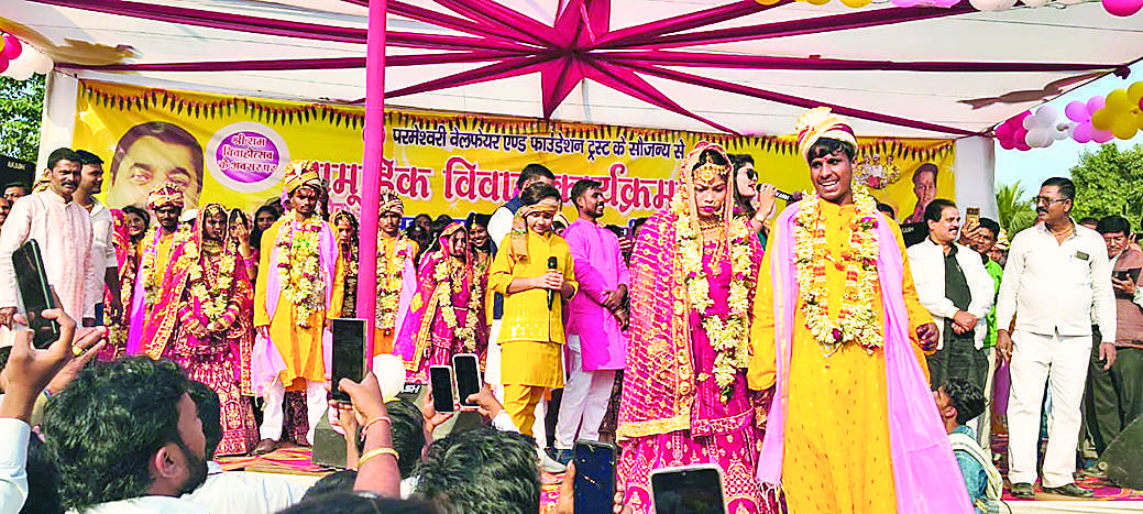 पीरो. गैर सरकारी संस्था परमेश्वरी सोशल वेलफेयर ट्रस्ट के तत्वावधान में शनिवार को पीरो में सामूहिक विवाह समारोह का आयोजन किया गया, जिसमें कुल 12 जोड़े विधिवत रूप से परिणय सूत्र में बंधकर जीवन की नयी पारी की शुरुआत की. यह समारोह संस्था द्वारा लगातार चौथे वर्ष आयोजित किया गया, जिसे लेकर स्थानीय लोगों में खासा उत्साह देखने को मिला. आयोजन स्थल पर बड़ी संख्या में महिलाएं और पुरुष उपस्थित रहे और सभी नवविवाहित जोड़ों की खुशी में सहभागी बने. पीरो अनुमंडल मुख्यालय स्थित एतिहासिक पड़ाव मैदान में आयोजित इस समारोह में अगिआंव विधायक महेश पासवान, पीरो बीडीओ अशोक कुमार, राजग नेता सुनील सिंह, भाजपा के पूर्व जिला महामंत्री मदन स्नेही, एबीवीपी के प्रदेश मंत्री छोटू सिंह, ज्योति कुशवाहा, विक्की सिंह समेत दर्जनों गण्यमान्य लोग उपस्थित रहे और नवविवाहित जोड़ों को आशीर्वाद दिया. समारोह में वर-वधू को संस्था की ओर से उपहार स्वरूप घर गृहस्थी के सभी सामान, वस्त्र और जेवर प्रदान किए गए. साथ ही समारोह में आये वर-वधू पक्ष के सभी लोगों के लिए भोजन और जलपान की भी व्यवस्था की गयी. समारोह का संचालन ख्यातिलब्ध एंकर रविरंजन राय ने किया. समारोह में भोजपुरी लोक गायिका निशा उपाध्याय ने अपने पारंपरिक विवाह गीतों से समां बांधा. निशा उपाध्याय के गीतों पर उपस्थित लोग देर तक झूमते नजर आये. इसके अलावा खुशी कक्कड़, आर्यन बाबू, अंजली भारद्वाज और रानी पांडेय समेत दर्जनों लोक कलाकारों ने लोगों का मनोरंजन किया. समारोह में पुरुषों के साथ भारी संख्या में महिलाएं भी शामिल हुईं. इस आयोजन में राजू पाठक, संजय मिश्रा, अरुण शर्मा, छोटू सिंह, संजीत मिश्र, अंकुश सिंह, राजन राय समेत अन्य लोगों ने महत्वपूर्ण योगदान दिया. सामूहिक विवाह समारोह ने न केवल समाज में सहयोग और समानता का संदेश दिया, बल्कि जरूरतमंद जोड़ों को नई जीवन शुरुआत में सहारा और उत्साह प्रदान किया. स्थानीय लोग इस पहल को सराहनीय बताते हुए आगे भी इस प्रकार के आयोजनों की उम्मीद व्यक्त कर रहे हैं.