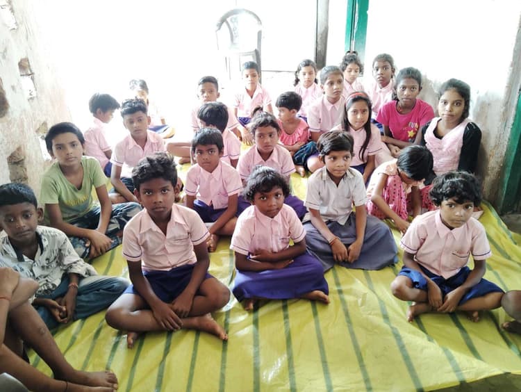 विद्यालय में 39 बच्चे नामांकित हैं. इसमें कक्षा एक में छह, दूसरी में सात, तीसरी में 14, चौथी में नौ और पांचवीं में तीन बच्चे नामांकित है. नित्य दिन 25 से अधिक बच्चों की उपस्थिति रहती है. बरामदे में बैठ पढ़ते हैं बच्चे : प्रभात खबर की टीम शनिवार की दोपहर 2.35 बजे जब विद्यालय पहुंची तो बरामदे में तिरपाल बिछा कर बच्चे बैठे हुए थे. वहीं शिक्षक उन्हें पढ़ा रहे थे. कमरे के अंदर गये तो सभी ओर सीपेज हो रहा था. भवन के अंदर रखे बेंच-डेस्क भी पानी में भींग कर खराब हो गये है. दूसरे भवन में किचन बनाया गया है, लेकिन इसकी स्थिति और भी खराब है. माता समिति के सदस्य इस जर्जर भवन में मध्याह्न भोजन तैयार करते हैं. उन्हें हमेशा हादसे का डर लगा रहता है.स्कूल के जरूरी सामान भी हो रहे खराब :