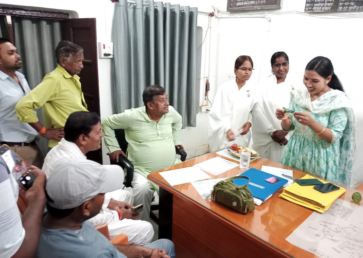 फोटो नंबर-1- रक्षासूत्र बंधवातीं सीओ. हसपुरा. प्रजापिता ब्रह्मकुमारी ईश्वरीय विश्व विद्यालय गोह शाखा की बहनों ने हसपुरा अंचल व प्रखंड कार्यालय पहुंच कर ओम शांति के लिए