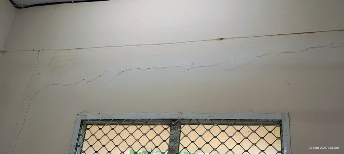 सदर अस्पताल के नये भवन की दीवार में तीन साल में ही पड़ गयी दरार