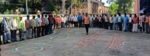 लोहिया स्वच्छ बिहार अभियान अंतर्गत धोरैया प्रखंड कार्यालय में बुधवार को प्रखंड समन्वयक अनिल कुमार के नेतृत्व में स्वच्छता ही सेवा 2025 कार्यक्रम के तहत बिहार का मानचित्र मानव शृंखला बनाकर स्वच्छता के प्रति जागरूक किया गया.