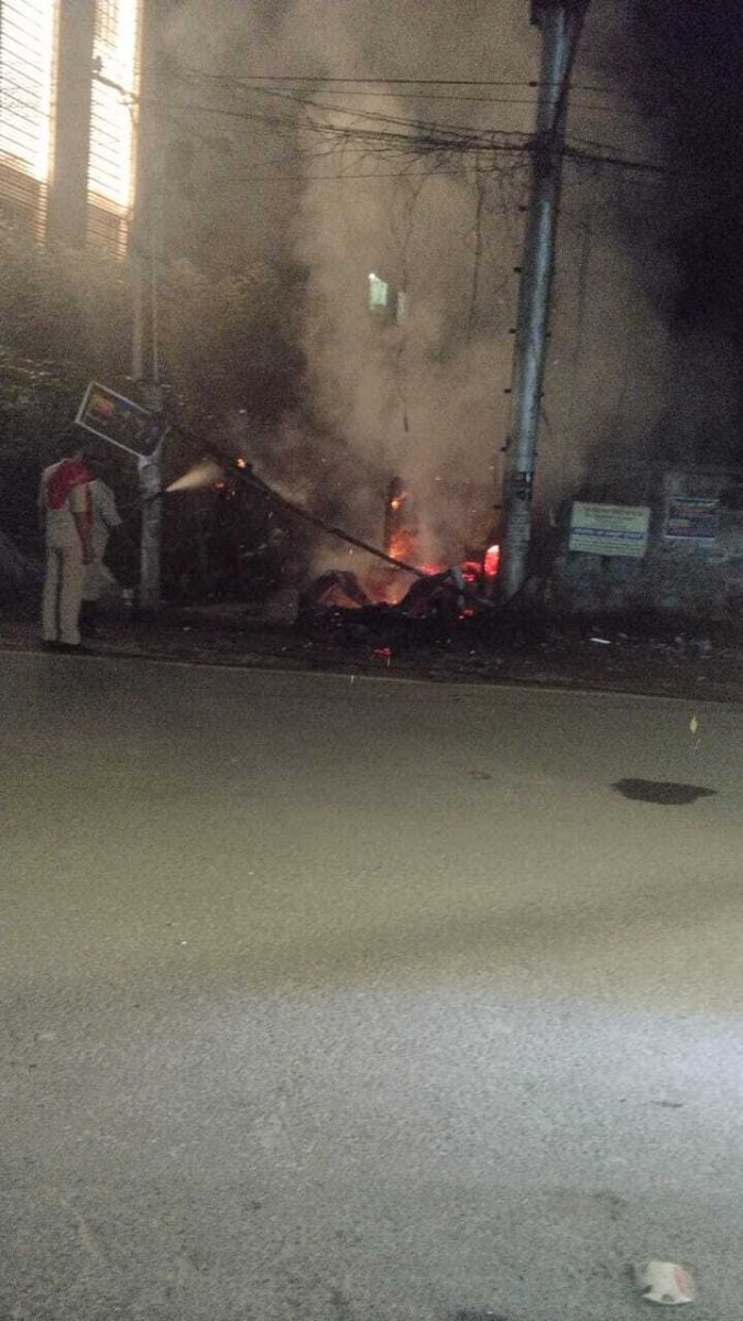 देवघर. नगर थानांतर्गत बिहारी लाल चक्रवर्ती रोड पर स्थित एक चाय-पान की गुमटी में अहले सुबह अचानक आग लग गयी. घटना में उक्त गुमटी के अंदर रखे सामान सहित पूरी गुमटी जल गयी. आसपास के लोगों से घटना की सूचना पाकर अग्निशमन विभाग के कर्मी दमकल के साथ घटनास्थल पहुंचे और गुमटी में लगी आग को बुझाया. आसपास के लोगों ने बताया कि बगल की एक ओर गुमटी जल सकती थी. वहीं आग की चपेट में बगल में स्थित बड़ा होटल भी आ सकता था. घटना के स्पष्ट कारणों का पता नहीं चल सका है. वहीं गुमटी मालिक कालेश्वर यादव ने हजारों की क्षति का दावा करते हुए आशंका जतायी है कि अज्ञात असामाजिक तत्वों ने इस घटना को अंजाम दिया गया होगा. समाचार लिखे जाने तक पुलिस व अग्निशमन विभाग की टीम मामले की जांच पड़ताल में जुटी है. उधर सुभाष चौक के समीप सड़क किनारे एक सब्जी बेचने वाले के सामान में भी सुबह आग लग गयी. इससे सब्जी विक्रेता को भी हजारों की क्षति पहुंची है.