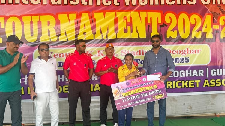 वरीय संवाददाता, देवघर. शहर के केकेएन स्टेडियम में झारखंड क्रिकेट एसोसिएशन की ओर से आयोजित इंटर डिस्ट्रिक्ट अंडर-23 वूमेंस टी-20 ट्रॉफी के तहत सोमवार को हजारीबाग व गुमला के बीच खेला गया, जिसमें हजारीबाग महिला की टीम ने गुमला टीम को चार विकेट से हरा दिया. गुमला टीम के कप्तान ने टॉस जीतकर पहले बल्लेबाजी करने का निर्णय लिया व पहले बल्लेबाजी करते हुए टीम ने 20 ओवर में नौ विकेट खोकर 120 रनों का स्कोर खड़ा किया. गुमला की बल्लेबाज सीमा कुमारी ने 38 रन व मेघा तिर्की ने 33 रन बनाये. हजारीबाग की गेंदबाज पूजा कुमारी ने तीन, अनीशा कुमारी और वर्षा कुमारी ने अपनी टीम के लिए दो-दो विकेट हासिल किये. लक्ष्य का पीछा करने उतरी हजारीबाग टीम ने 19.1 ओवर में छह विकेट खोकर 121 रन बना कर जीत हासिल कर ली. हजारीबाग की बल्लेबाज सोनी कुमारी ने 29 रन, रितिका कुमारी ने 24 रन व वर्षा कुमारी ने 23 रन बनाये. गुमला की तरफ से गेंदबाज श्वेता कुमारी ने तीन विकेट व अनामिका ने दो विकेट लिये. इस मैच में हजारीबाग की वर्षा कुमारी को प्लेयर ऑफ द मैच चुना गया. मैच में अंपायर की भूमिका में धर्मेंद्र कुमार व वकील अहमद और स्कोरर की भूमिका में अमित तिवारी थे. वहीं जेएससीए की ओर से टीआरडीओ के रूप में मनोज कुमार मौजूद थे. उल्लेखनीय है कि देवघर को ग्रुप ए का वेन्यू मिला है इस ग्रुप में हजारीबाग, जमशेदपुर रांची,देवघर, रामगढ़ और गुमला की टीम यहां पर भाग ले रही है. यह जानकारी क्रिकेट एसोसिएशन के संयुक्त सचिव व मीडिया प्रभारी राकेश पांडे ने दी.
